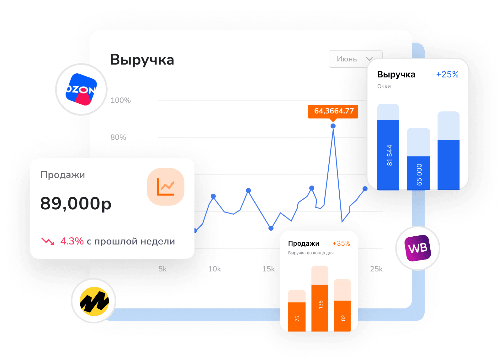 Полный цикл финансовой и операционной отчетности с возможностью кастомизации под пользователяПодключение до 7 магазинов на OZON/Wildberries/Яндекс Маркет